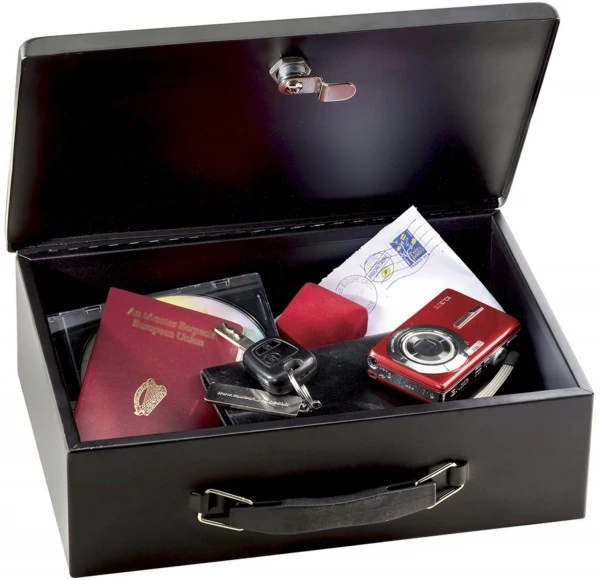Die mittlere Dokumentenkassette Master Lock Nr. 7140EURD ist ideal geeignet für die Aufbewahrung von Scheckbüchern, Pässen und anderen vertraulichen Dokumenten (passend für Papierformat A4). Schloss mit Schlüssel für mehr Diskretion und Schutz. Einfacher Transport durch den eingebauten Tragegriff.